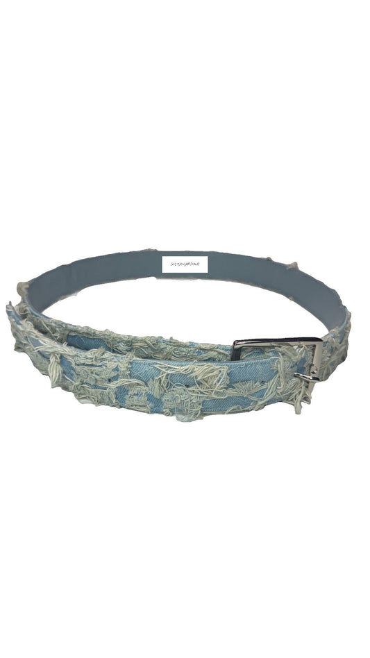 (BUNDLE) Distressed Denim Belt Light Blue & Dark Black
