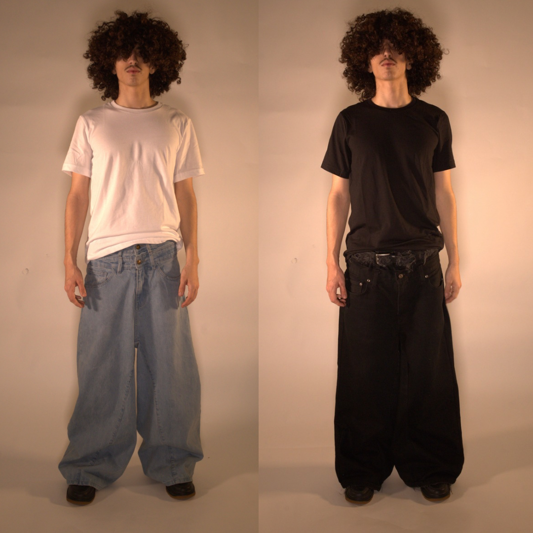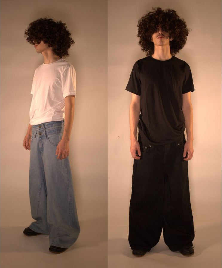 (BUNDLE) Double Waisted Baggy Jeans Light Blue & Dark Black
