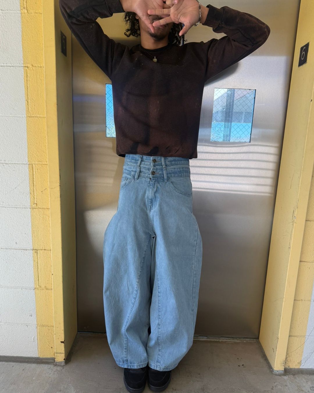 Double Waisted Baggy Jeans (Light Blue)